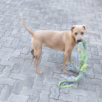 Lucy is extremely loveable and friendly and loves giving hugs and kisses. She lives for head scratches and cuddles and being with someone who will play in the garden with her. Her favourite toy is her rope. Want to try play tug-o-war with her?