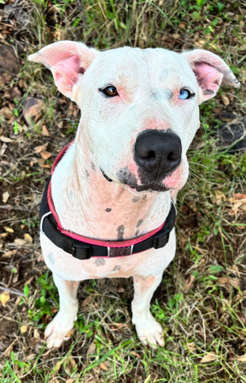 Natalie isn’t fully deaf — she responds to certain tones and is beautifully tuned in to her humans. She’s a little quirky, a lot lovable, and fully ready to be someone’s heart dog.